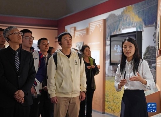 4月28日,在上海市檔案館的展廳內(nèi),編研部工作人員戴舒(右一)為參觀者講解。檔案館的青年組成“上海市檔案館青年檔案文化志愿宣講團(tuán)隊”,常年擔(dān)任館內(nèi)展覽的志愿講解員。