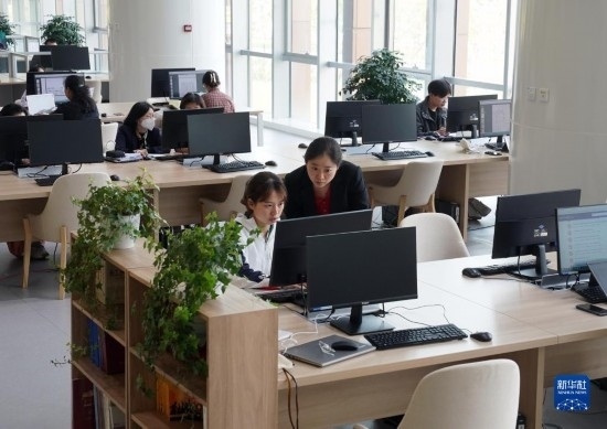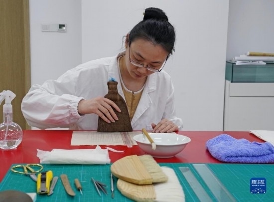 4月28日,在上海市檔案館的保護(hù)技術(shù)部,年輕的檔案修復(fù)師們在工作中。