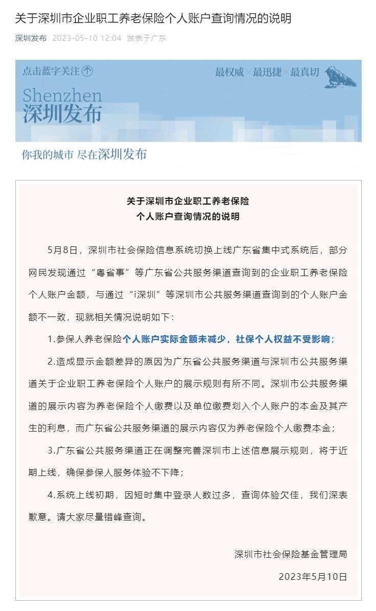·深圳社保系統(tǒng)切換,個人賬戶大幅減少?官方回應:實際金額未減少,個人權益不受影響。