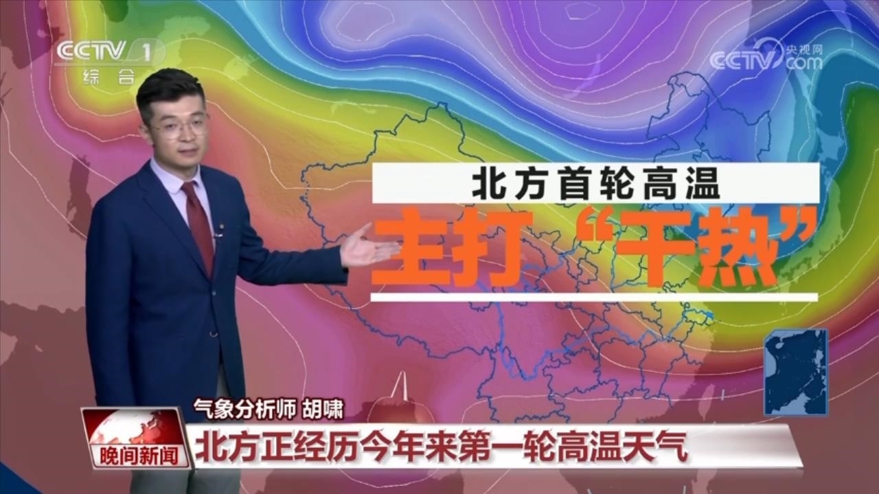氣象分析師 胡嘯:目前,我們國(guó)家北方正在經(jīng)歷今年第一輪大范圍的高溫天氣過(guò)程。這一輪高溫天氣過(guò)程最大的特點(diǎn),就是干熱。伴隨著一個(gè)高壓擠區(qū)的逐漸東移,高溫逐漸顯現(xiàn),在擠區(qū)之內(nèi)是下沉增溫,晴朗少云的天氣。