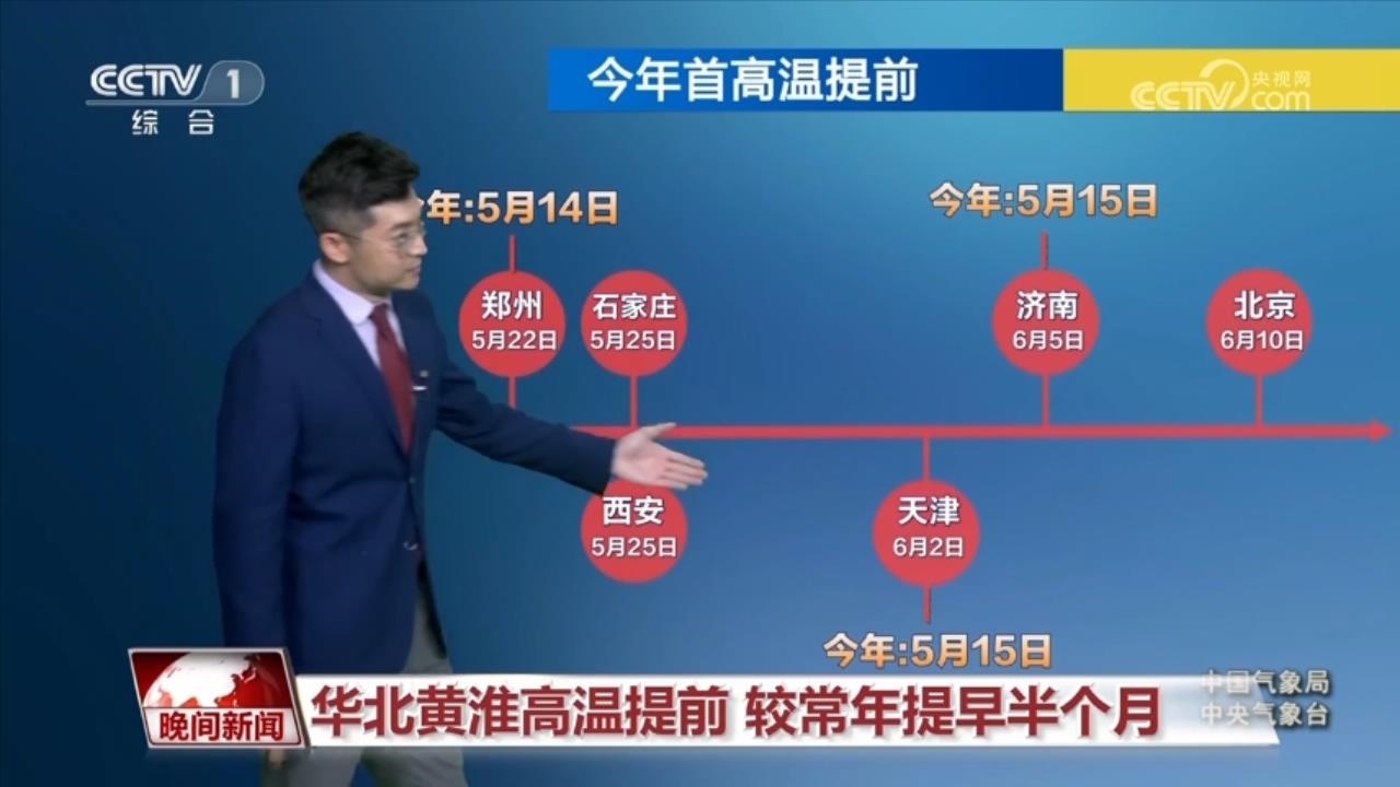這輪高溫天氣過(guò)程,要比常年同期相對(duì)偏早。城市當(dāng)中,鄭州在5月14日,以及天津和濟(jì)南在5月15日都已經(jīng)出現(xiàn)了首個(gè)高溫日,而5月16日,石家莊和北京也有可能會(huì)出現(xiàn)高溫,要比常年同期偏早半個(gè)月左右。