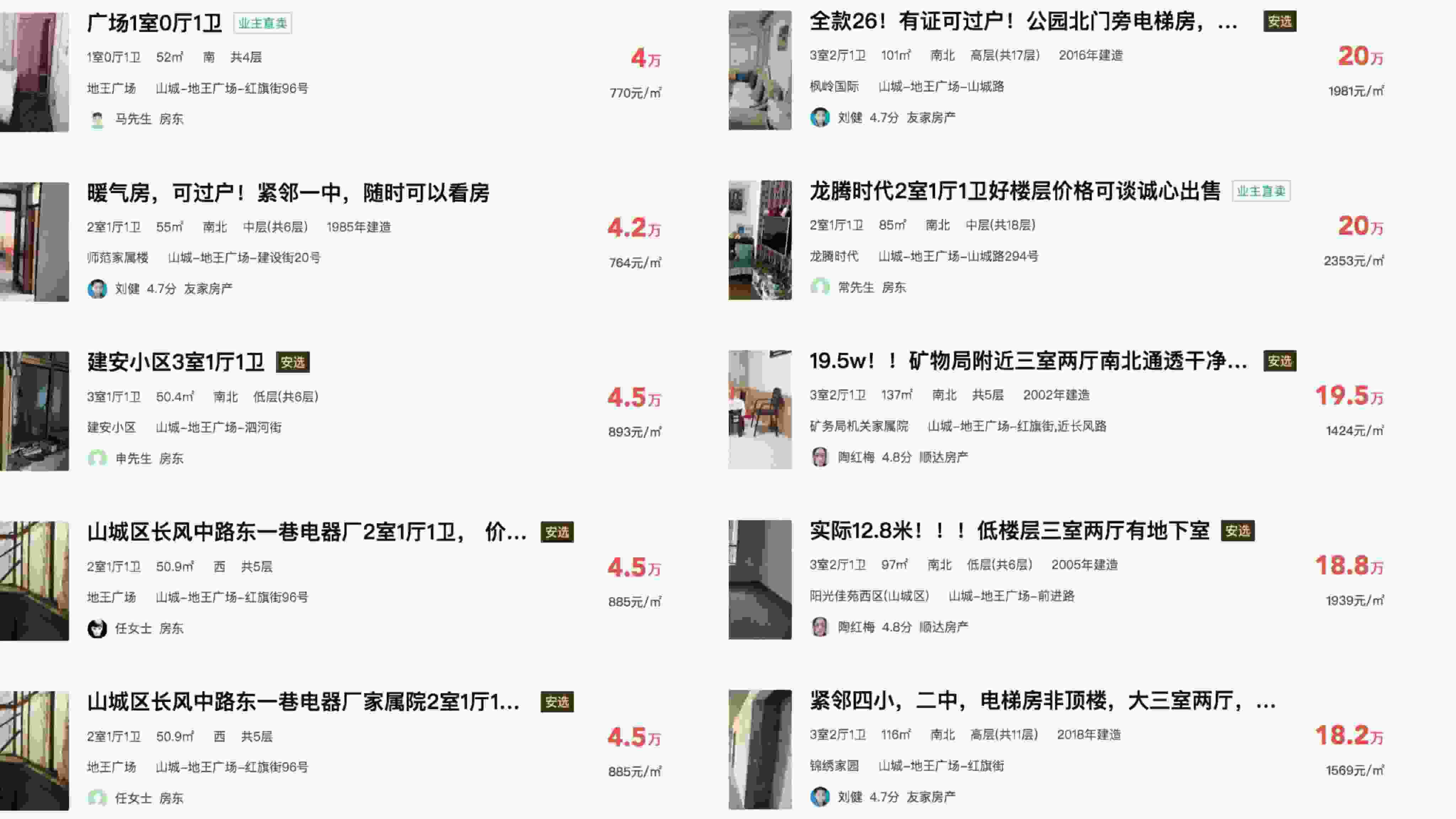 澎湃新聞從安居客平臺看到,鶴壁市低總價的房源確實存在,價格約在4萬元/套,且多集中于鶴壁市山城區(qū)。