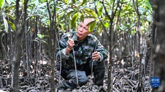 今年68歲的莫積瑞老人,1993年開始在廣西山口紅樹林保護(hù)區(qū)管理處保護(hù)員崗位任職。2015年,莫積瑞退休,因為經(jīng)驗豐富被返聘,繼續(xù)從事紅樹林保護(hù)工作。