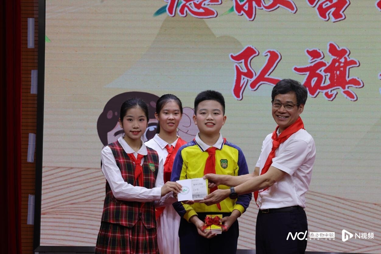 近年來,廣東省中醫(yī)院開展中醫(yī)藥文化進(jìn)校園活動(dòng)。5月31日,第一屆“德叔杏林研學(xué)中隊(duì)”的隊(duì)員即將畢業(yè),他們將隊(duì)旗鄭重地交回德叔手中,并收下德叔親筆簽名的《醫(yī)學(xué)三字經(jīng)》。而這面象征中醫(yī)藥文化的隊(duì)旗也傳遞到新一屆“德叔杏林研學(xué)中隊(duì)”隊(duì)員的手中,同時(shí),德叔還贈(zèng)送了中藥種子,寓意中醫(yī)藥文化生生不息、薪火傳承,在雙方共同打造的這片中醫(yī)藥文化熱土生根發(fā)芽,開花結(jié)果。