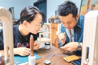 作為今年上海市為民辦實事項目“社會大美育課堂”的重要組成部分,今年上海市民藝術(shù)夜校春季班共開設(shè)教學(xué)點(diǎn)位123個、課程278門、招收學(xué)員6507人。夜校學(xué)習(xí)內(nèi)容包括傳統(tǒng)文化、時尚文化、非遺技藝、江南文化以及區(qū)域文化等。圖為5月8日,上海市寶山區(qū)淞南鎮(zhèn)社區(qū)文化活動中心,老師(右)正在指導(dǎo)學(xué)生皮具制作技巧。王 初攝(人民圖片)