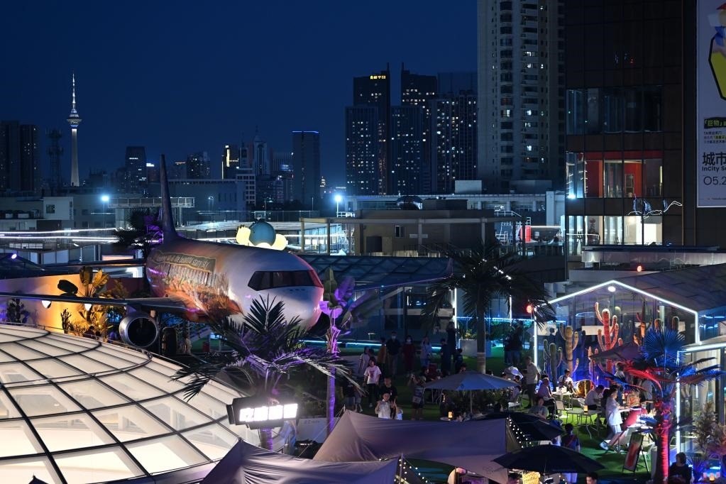 在天津市和平區(qū)金街商圈印象城,這是樓頂?shù)摹帮w機”主題酒吧。新華社記者 李然 攝