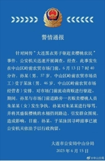 ·大連通報男子驅(qū)趕賣櫻桃農(nóng)民:為市場方人員,已被行拘。