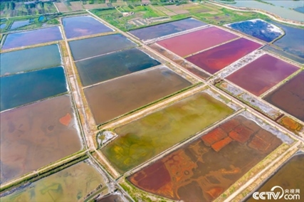 2023年6月14日,山西運城,七彩鹽湖呈現(xiàn)出色彩斑斕的景觀,猶如大地調(diào)色板,美不勝收。