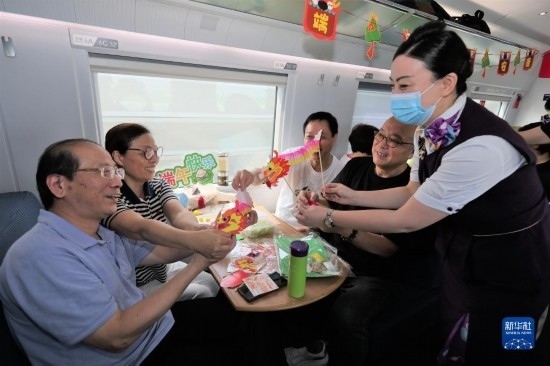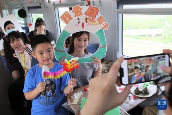 端午節(jié)前夕,鐵路上??瓦\(yùn)段在列車(chē)上邀請(qǐng)旅客參加端午民俗活動(dòng),迎接端午佳節(jié)。