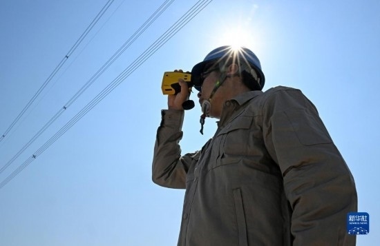 6月24日,在天津市西青區(qū),國(guó)網(wǎng)天津市電力公司工作人員對(duì)500千伏河橋線進(jìn)行巡視。