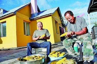塔河縣十八站鄂倫春族鄉(xiāng)一個(gè)農(nóng)家院飯店的院子里,主人邀請(qǐng)來(lái)家做客的朋友一起準(zhǔn)備晚餐。馮劍飛攝