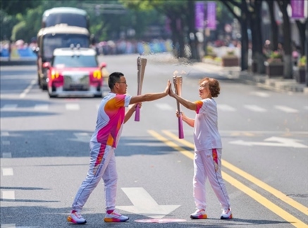 杭州亞運(yùn)會(huì)火炬?zhèn)鬟f到將滿80歲的董四教手中。作為11日火炬?zhèn)鬟f紹興站活動(dòng)的第71棒火炬手,她雙手涂著亞運(yùn)主題的彩色指甲,高舉“薪火”從人群中小跑而過(guò)。與董四教相似的是,一群平均年齡超過(guò)70歲的退休音樂愛好者,組成了一支老年“搖滾樂隊(duì)”。面對(duì)衰老和離散,他們創(chuàng)造了一種可能性,對(duì)抗身體和生活的失控,找到了縫合傷痛、抵抗歲月、怒放生命的方式。學(xué)會(huì)彈奏,他們只是唱歌;注入歲月,他們開始歌唱。