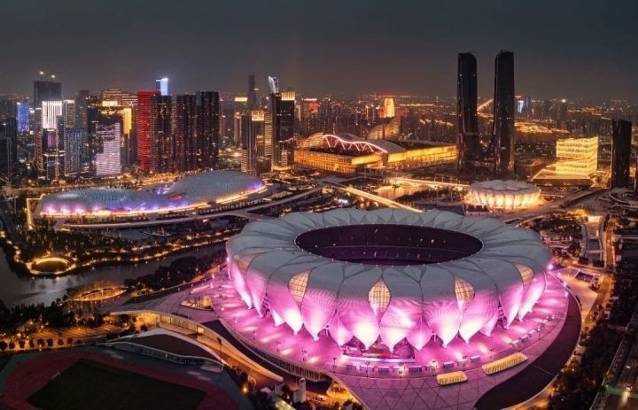 比如充滿想象的場(chǎng)館設(shè)計(jì)。錢塘江畔的“大蓮花”,其建筑體態(tài)源于錢塘江水的動(dòng)態(tài),給人以震撼的同時(shí),也“盛放”出浙江的文化底蘊(yùn)和藝術(shù)魅力;“水幔”環(huán)繞的手球館,外觀別具一格,“條條水?!贝孤浜苁俏Γ灰浴昂贾輦恪睘樵煨偷那髑驁?chǎng),則詮釋出江南古典美學(xué)十足的浪漫韻味。