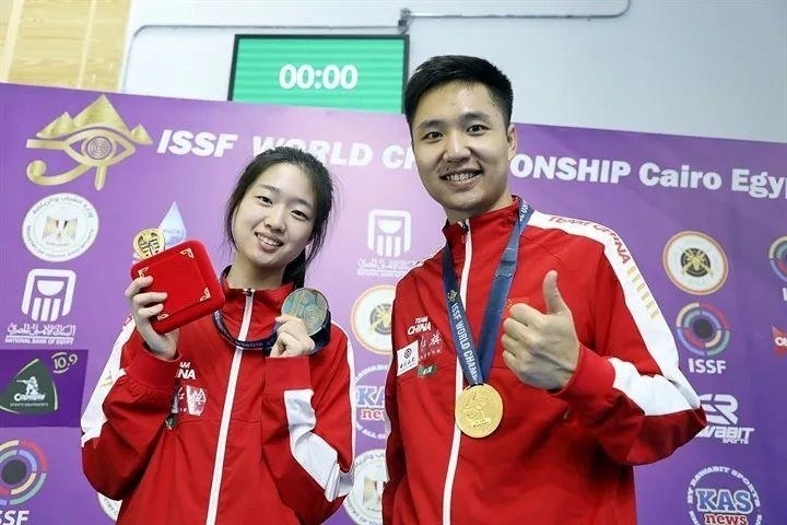 △2022年射擊世錦賽,黃雨婷、楊皓然奪得10米氣步槍混合團體冠軍。