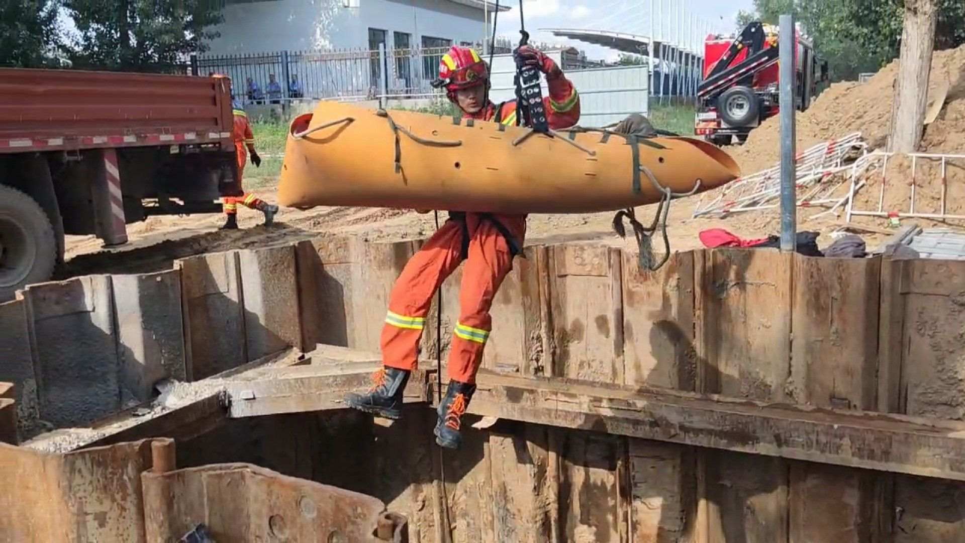 6月28日15時38分,呼和浩特市玉泉區(qū)一處工地,1名工人施工時不慎掉入4米深坑中,情況危急。