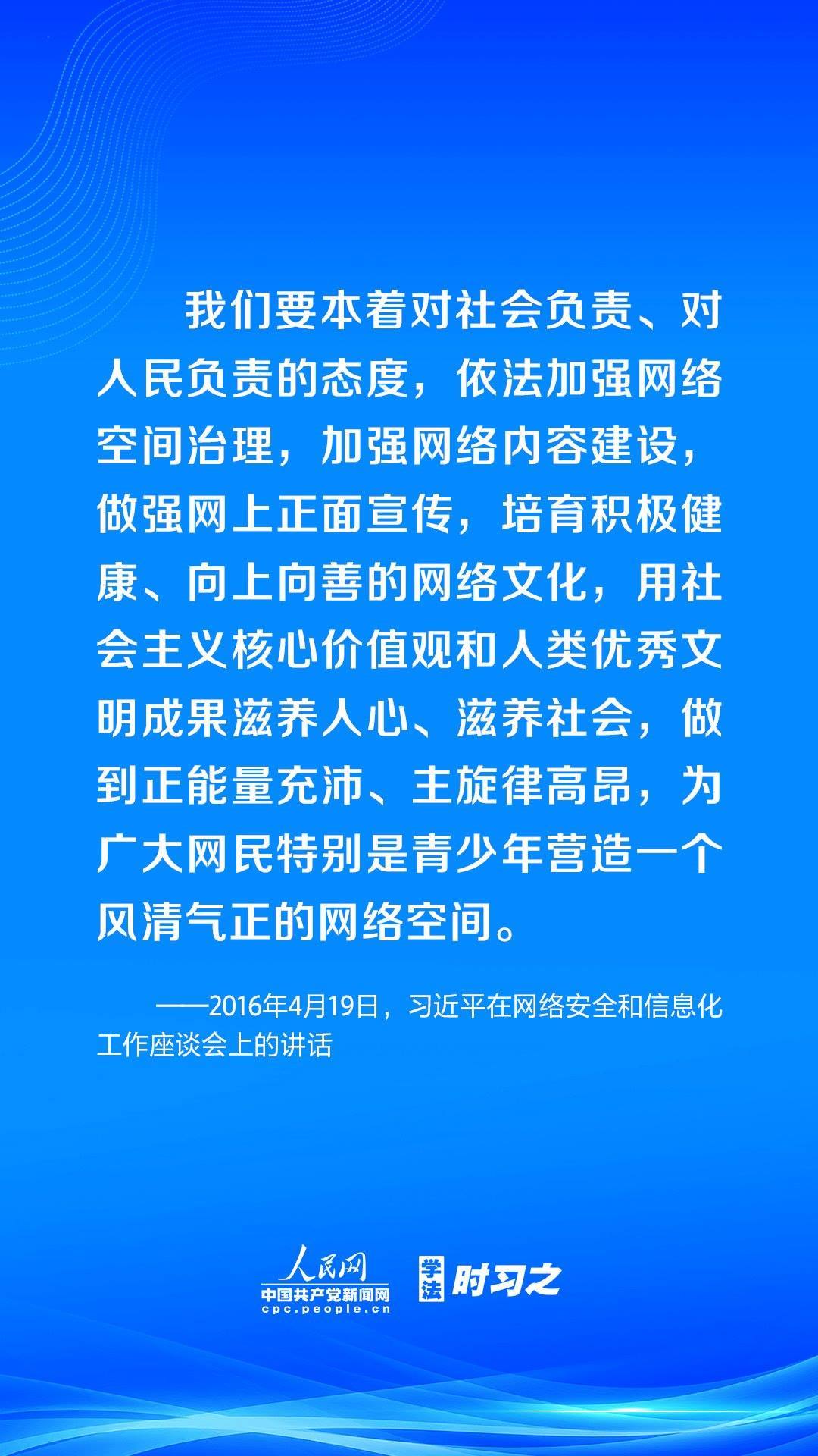 營(yíng)造風(fēng)清氣正的網(wǎng)絡(luò)空間,離不開法治手段的保障。黨的十八大以來(lái),習(xí)近平總書記高度重視網(wǎng)絡(luò)法治工作,強(qiáng)調(diào)要堅(jiān)持依法治網(wǎng)、依法辦網(wǎng)、依法上網(wǎng),讓互聯(lián)網(wǎng)在法治軌道上健康運(yùn)行。