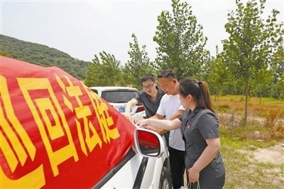 “現(xiàn)在開庭!”隨著審判長的一聲令下,這場以青山為背景、警車為審判臺、黃土地為審判場的“別樣”庭審正式落槌!近日,山東省莒南縣人民法院環(huán)境資源審判庭的法官冒著酷暑來到坊前鎮(zhèn)李家崖村,對被告人李某非法占用農用地刑事附帶民事公益訴訟案件進行開庭宣判,并現(xiàn)場監(jiān)督被告人對破壞的土地進行徹底修復。