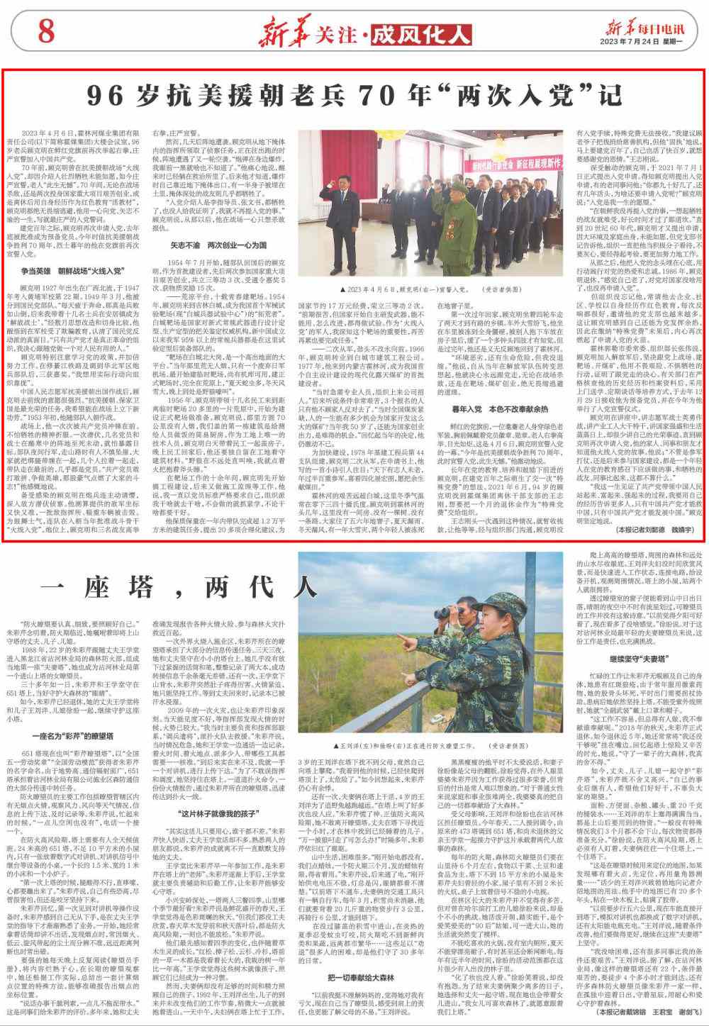 建黨百年之際,顧克明再次申請(qǐng)入黨,去年底被批準(zhǔn)成為預(yù)備黨員。今年時(shí)值抗美援朝戰(zhàn)爭(zhēng)勝利70周年,烈士暮年的他在黨旗前再次宣誓入黨。