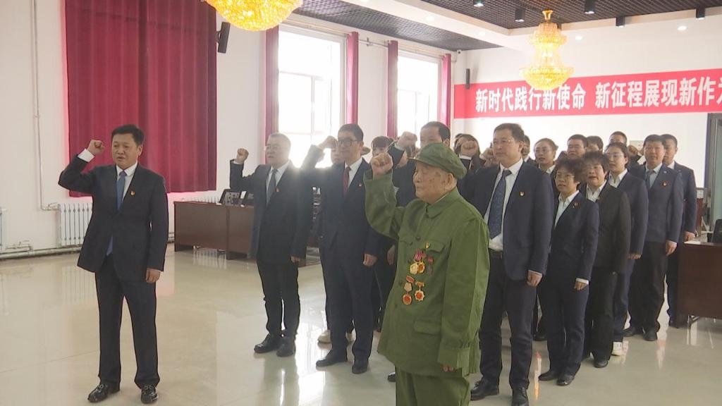 2023年4月6日,霍林河煤業(yè)集團(tuán)有限責(zé)任公司(以下簡(jiǎn)稱霍煤集團(tuán))大樓會(huì)議室,96歲老兵顧克明在鮮紅黨旗前再次舉起右拳,莊嚴(yán)宣誓加入中國(guó)共產(chǎn)黨。