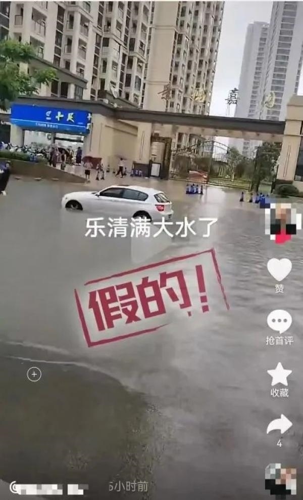 巡查還發(fā)現(xiàn)有網(wǎng)民發(fā)布視頻,標(biāo)有文字“樂(lè)清滿大水了”,內(nèi)容可見(jiàn)有小區(qū)門口積水嚴(yán)重,在道路停放的幾輛汽車被淹至車身一半。經(jīng)核實(shí),該視頻并非發(fā)生在樂(lè)清。發(fā)布視頻的網(wǎng)民陳某某(男,43歲)為吸引眼球捏造事實(shí),在某平臺(tái)賬號(hào)發(fā)布,造成負(fù)面影響,已被警方依法給予行政處罰。