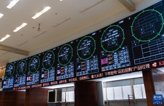 這是昆明國際花卉拍賣交易中心拍賣大廳的大屏上實(shí)時顯示的鮮花信息(7月13日攝)。新華社記者 陳欣波 攝