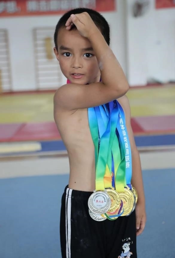 來自湖南湘潭的7歲體操小將蔣鴻暉,在今年省賽勇奪5金2銀。蔣鴻暉的父母均為殘障人士,他從4歲就開始體操訓(xùn)練生涯,夢想長大能拿奧運(yùn)冠軍。