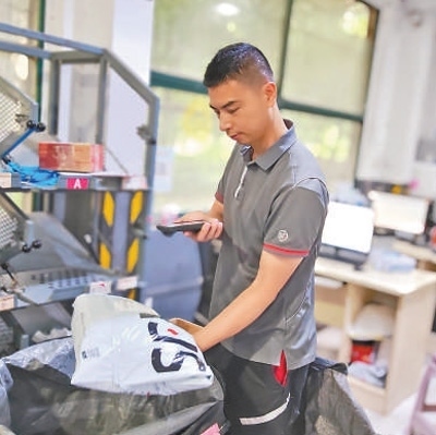 張裕在分揀快遞。本報記者 吳 君攝
