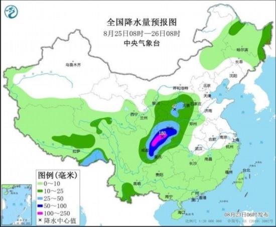 全國降水量預(yù)報圖(8月25日08時-26日08時)