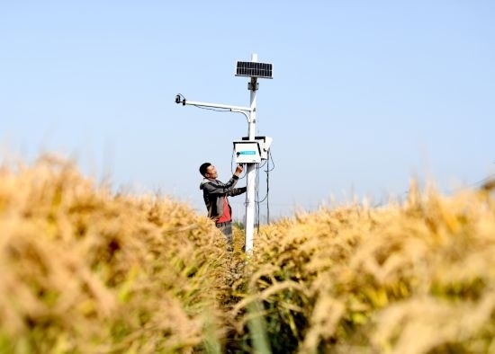 10月15日,樂亭縣數字循環(huán)現(xiàn)代農業(yè)園區(qū)內,工作人員在調試監(jiān)測設備。(受訪單位供圖)