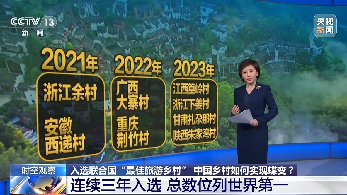 中國是從2021年就開始參與這個評選了,所以前兩屆也都有入選鄉(xiāng)村,2021年入選的是浙江余村、安徽西遞村;2022年入選的是廣西大寨村、重慶荊竹村,加上今年入選的四個村子,我國入選的總數已經達到8個,目前是全世界擁有“最佳旅游鄉(xiāng)村”最多的國家。