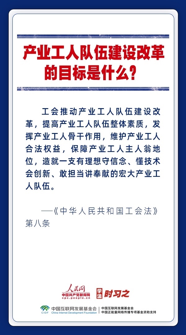 日前,中華全國總工會新一屆領導班子產(chǎn)生。黨和政府歷來重視工會的地位作用,十分注重加強工會法律制度建設,專門為廣大職工制定了《中華人民共和國工會法》。網(wǎng)約車司機、快遞員、外賣配送員能入工會嗎?產(chǎn)業(yè)工人隊伍建設改革的目標是什么?企業(yè)開會討論哪些事項必須有工會代表參加?一起來了解。