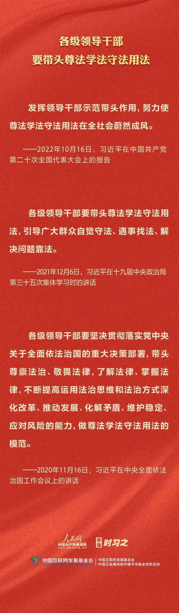 今年是貫徹落實黨的二十大精神的開局之年。中共中央政治局決定從今年4月開始,在全黨自上而下開展學(xué)習(xí)貫徹習(xí)近平新時代中國特色社會主義思想主題教育。習(xí)近平法治思想是習(xí)近平新時代中國特色社會主義思想的重要組成部分,人民網(wǎng)·中國共產(chǎn)黨新聞網(wǎng)推出學(xué)法時習(xí)之·學(xué)習(xí)習(xí)近平法治思想系列策劃,本篇聚焦“堅持抓住領(lǐng)導(dǎo)干部這個‘關(guān)鍵少數(shù)’”。