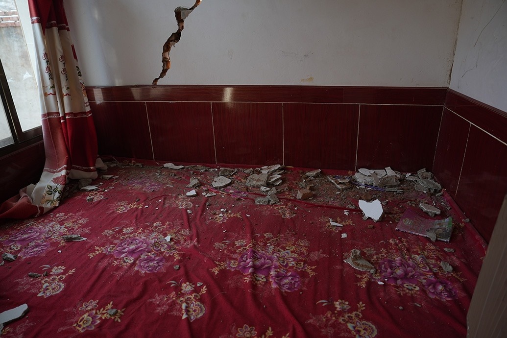 山莊村村民在墻體開(kāi)裂的家中。