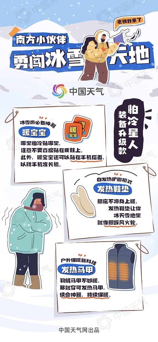 央視網(wǎng)消息:據(jù)中國(guó)天氣網(wǎng)訊,“哈爾濱凍梨都擺盤了”、“鄂倫春族驚現(xiàn)中央大街”、“爾濱,又整活兒了”……這個(gè)冬季,哈爾濱爆火出圈,成為新晉“頂流”,帶火了一眾冰雪旅游地。隨著寒假的到來(lái),預(yù)計(jì)又有一大批來(lái)自各地的小土豆、小橘子、小辣椒將勇闖冰雪世界。但東北旅游真不是說(shuō)走就能走的,-20℃甚至-30℃的氣溫分分鐘教你認(rèn)清現(xiàn)實(shí)。中國(guó)天氣網(wǎng)推出東北旅游防寒保暖攻略,一圖掌握冰雪游防凍保命穿搭。