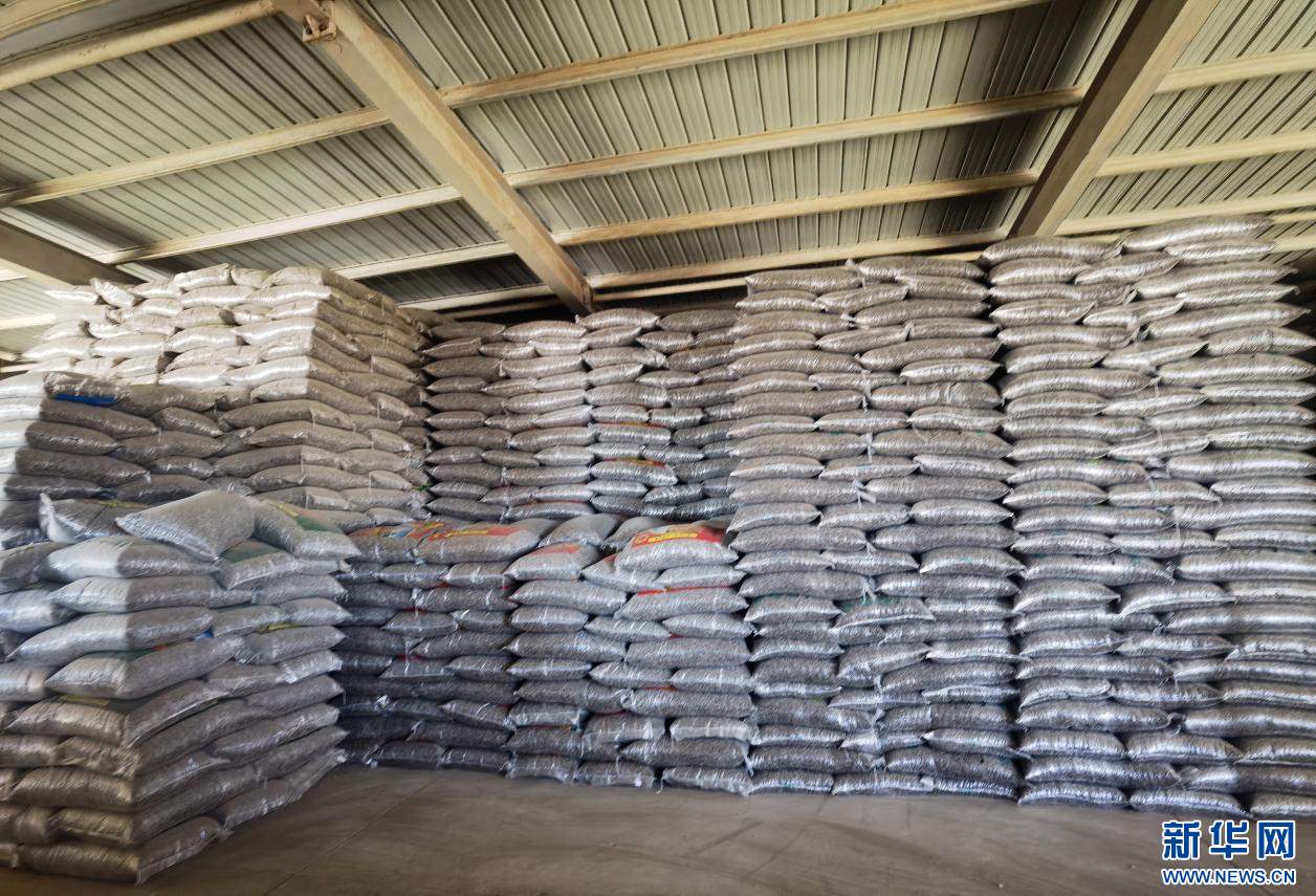 ??紅泥井村糧油交易綜合市場葵花籽庫房一角。新華網郝芳芳攝