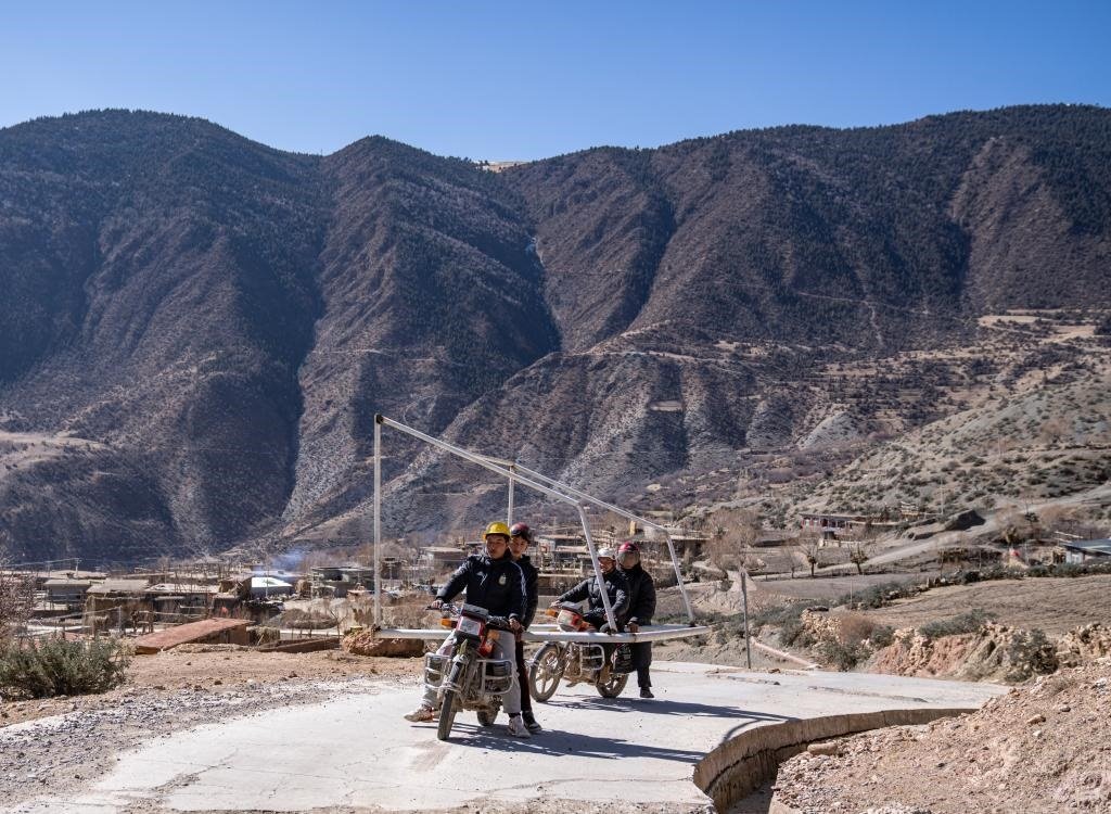 修好啦,嘎瑪群美帶著摩托車隊馱著球門興沖沖回村