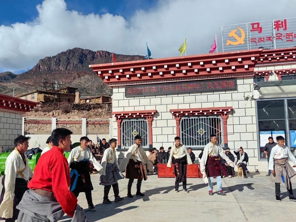 球員們在馬利村的“慶元旦迎新年”文藝活動中演出(1月1日攝)