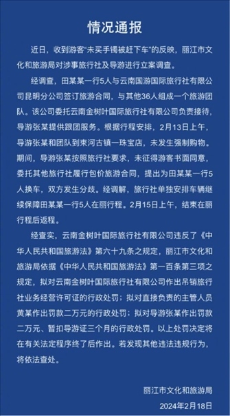 ·麗江通報“一家人未買5萬手鐲被趕下車”:未發(fā)生強制購物。