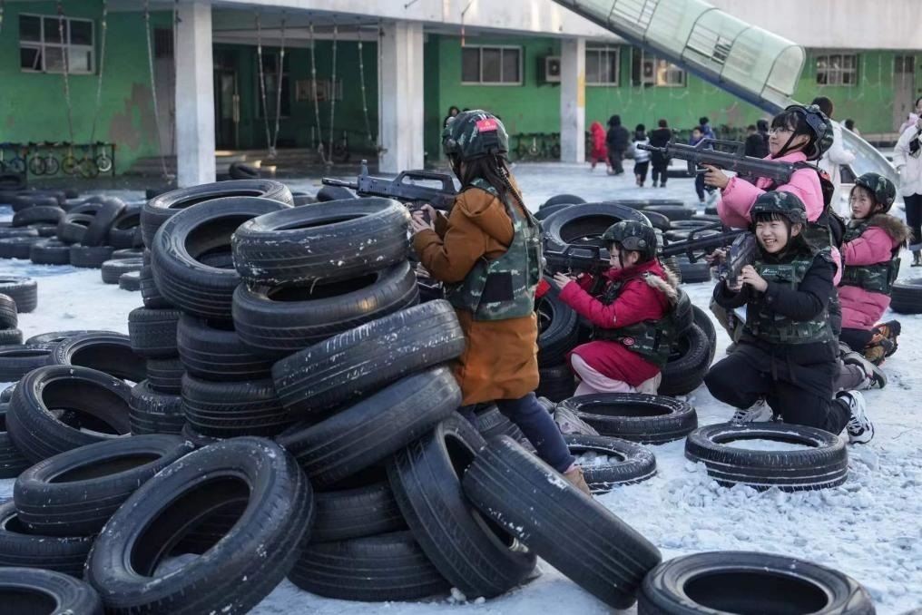 “前方障礙物發(fā)現(xiàn)敵情!”“快隱蔽!”……冬日的沈陽寒風(fēng)襲人,在沈陽市渾南區(qū)第九小學(xué)操場(chǎng)上,30名小學(xué)生分成兩組,身著CS裝備,正在激烈“戰(zhàn)斗”。在一系列奔跑、跳躍、匍匐中,孩子們既能強(qiáng)身健體,也增強(qiáng)了團(tuán)隊(duì)協(xié)作能力。