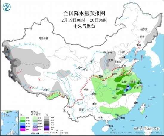 全國降水量預(yù)報圖(2月18日8時-19日8時)