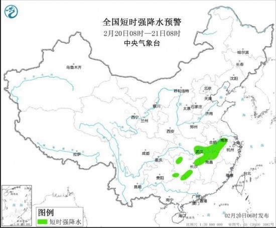 預(yù)計2月20日8時至21日8時,安徽西南部、湖北東部和南部、湖南中北部和西南部、江西中北部、貴州東南部、廣西東北部等地的局地將有8-10級雷暴大風或冰雹天氣;安徽中南部、江蘇西南部、湖北東部、湖南南部和西部、江西北部、廣西東北部等地的部分地區(qū)將有短時強降水天氣,最大小時雨量20-30毫米,局地可達35毫米以上。
