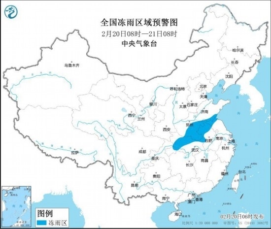 中央氣象臺2月20日06時發(fā)布冰凍黃色預(yù)警: