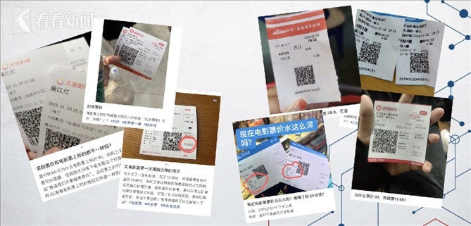 為了求證這一說法,記者來到了網(wǎng)友爆料的這家電影院,并提前通過三種渠道在線上購入了同天、同電影院、同場(chǎng)次、同排位置的三張電影票,分別花費(fèi)了56元、58元、49元。