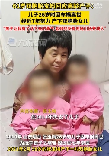 ·61歲雙胞胎寶媽回應(yīng)高齡產(chǎn)子:兒子26歲時(shí)因車禍去世,兩個(gè)孩子給了我活下去的勇氣,會(huì)傾盡所有將兩個(gè)孩子撫養(yǎng)成人。