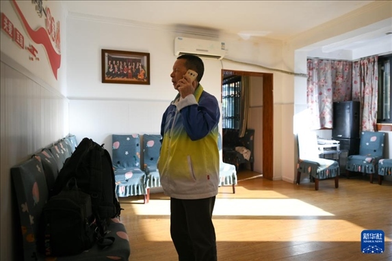 5月13日,在出發(fā)前往周年慶前,張世維在家中聯(lián)系現(xiàn)場細節(jié)。新華社記者 胥冰潔 攝