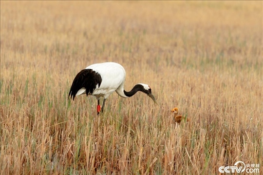 黑龍江省齊齊哈爾市扎龍國家自然保護區(qū),國家一級保護動物野化的一對丹頂鶴夫妻成功孵化一個丹頂鶴寶寶,丹頂鶴夫妻蘆葦蕩里叼著食物喂小寶寶,丹頂鶴寶寶毛茸茸的非常可愛。
