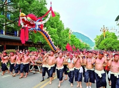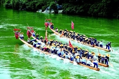 每年農(nóng)歷五月,在貴州省黔東南苗族侗族自治州的清水江流域,當(dāng)?shù)氐拿缱迦罕姸紩e辦苗族獨(dú)木龍舟節(jié)。龍舟節(jié)以水上龍舟競渡為載體,融合了苗族服飾文化、歌舞文化、飲食文化等,數(shù)百年經(jīng)久不衰,沿襲至今。2008年,苗族獨(dú)木龍舟節(jié)便被列入第二批國家級非物質(zhì)文化遺產(chǎn)代表性項目名錄。