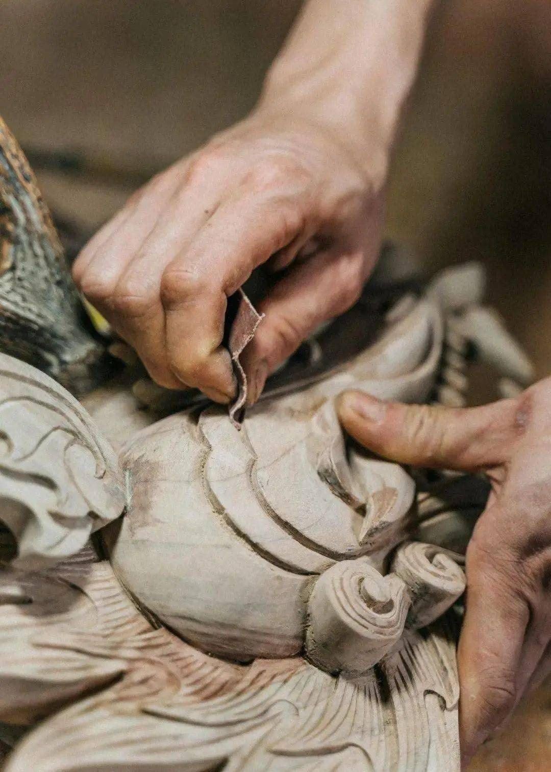 來找張偉潮的客戶,以做新龍頭居多。訂單排隊,還都是卡點(diǎn)取貨,張偉潮練就了一手絕技:刀為筆,木為紙,筆起刀落,不帶半分猶豫。“木雕是做減法,錯了就是錯了,所以每一刀都要想好怎么做?!?/p>