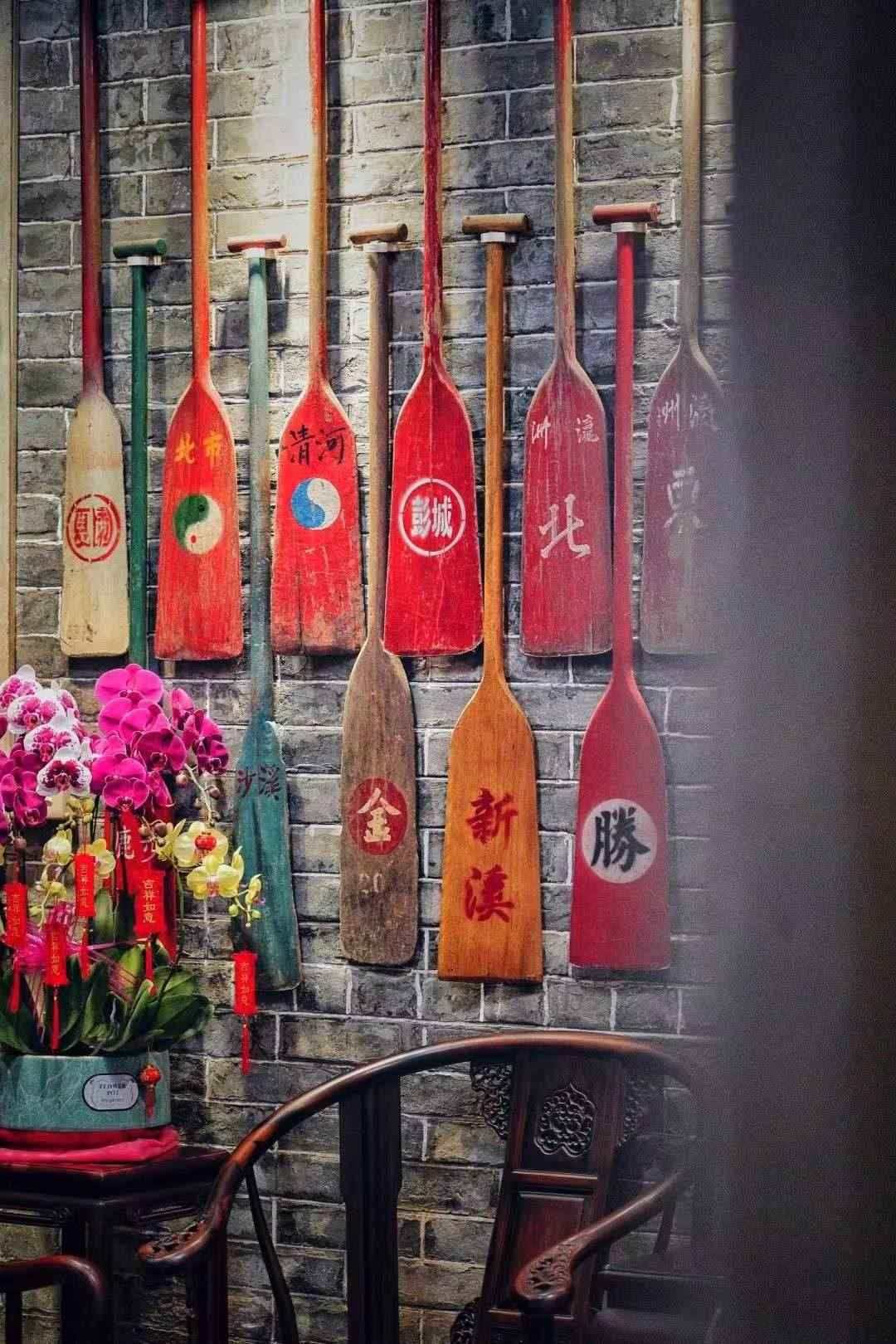 在張偉潮工作室的青磚墻上掛滿了劃龍舟所用的船槳?!皝砣↓堫^的人大多會送一面錦旗,我說不要錦旗,可以把你們不用的槳送給我?!边@些年張偉潮陸續(xù)收到了300多支船槳,在他看來,每一把槳都蘊(yùn)含著自己隊伍、村落的故事,每一把都是獨(dú)一無二的,他要把船槳當(dāng)作錦旗一樣高高地掛在墻上。