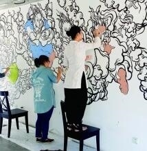 藝術(shù)家文娜和許村村民共同創(chuàng)作壁畫(huà)。合美術(shù)館提供